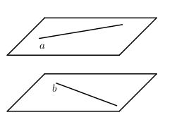 Khi 2 đường thẳng a và b lần lượt thuộc 2 mặt phẳng song song ta chưa thể kết luận chúng song song hay chéo nhau nhưng chắc chắn chúng không có điểm chung.
