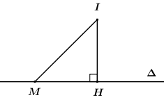 Gọi \(H\) là hình chiếu vuông góc của \(I\) lên \(\Delta \), khi đó ta có \(d\left( {I;\Delta } \right) = IH \le IM\) (quan hệ giữa đường vuông góc và đường xiên).