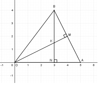 \(\begin{align} & \Delta BMK\backsim \Delta BNA\,\left( g.g \right)\Rightarrow \frac{MK}{NA}=\frac{BM}{BN} \\ & \Rightarrow \frac{MK}{2}=\frac{\frac{1}{2}AB}{4}\Leftrightarrow \frac{MK}{2}=\frac{\sqrt{5}}{4}\Leftrightarrow MK=\frac{\sqrt{5}}{2} \\ \end{align}\)