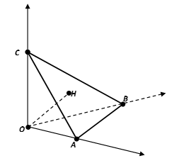 Tương tự: \(OH\bot AB\)\(\Rightarrow OH\bot \left( ABC \right)\) hay \(\overrightarrow{OH}=\left( 1;1;-3 \right)\) là vectơ pháp tuyến của mặt phẳng \(\left( P \right)\).