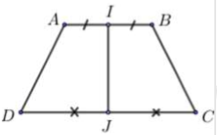 Gọi \(I,\,J\) lần lượt là trung điểm của hai đường thẳng \(AB,\,CD \Rightarrow IJ \bot AB;\,IJ \bot CD\) (tính chất hình thang cân)