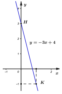 Đường thẳng \(\left( d \right)\) đi qua \(K\left( {1; - 1} \right)\) và \(H\left( {0;3} \right)\)