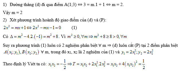 Trong mặt phẳng tọa độ Oxy, cho đường thẳng (d): y = mx + 1 và parabol (P): y = 2x2.