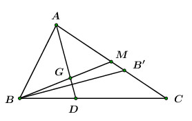 Gọi \(B'\) là điểm đối xứng của \(B\) qua phân giác góc \(A\) \( \Rightarrow B' \in AC\)