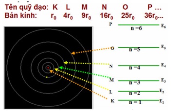Ta có: r = r0 n2; Quỹ đạo K ứng n =1; Quỹ đạo L ứng n =2; M ứng n =3 ; N ứng n =4 Vậy :