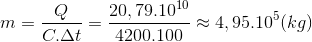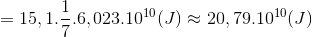 Trong phản ứng tổng hợp hêli: , nếu tổng hợp hêli từ 1g Li thì năng lượng tỏa ra có thể đun sôi bao nhiêu kg nước có nhiệt độ ban đầu là 00C ? Nhiệt dung riêng của nước C = 4200(J/kg.K) .