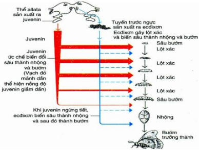 Ta có thể thấy hormone ecdixon tác động trong suốt giai đoạn hậu phôi
