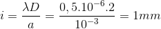 Trong thí nghiệm giao thoa ánh sáng bằng khe I-âng. Cho biết S1S2 = a = 1 mm khoảng cách giữa hai kh