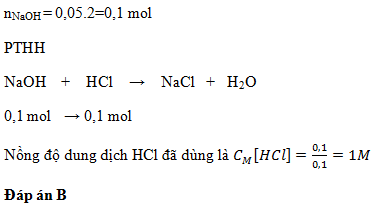 Trung hòa 100ml ddHCl cần vừa đủ 50ml ddNaOH 2M. Xác định nồng độ mol dd HCl đã dùng: