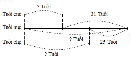 Số tuổi chị hơn em là: \(31\, - \,25\, = \,6\) (tuổi)