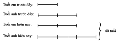 Trước đây vào lúc anh bằng tuổi em hiện nay thì anh gấp đôi tuổi em. Biết rằng hiện nay tổng số tuổi của cả hai anh em là 40 tuổi. Tính tuổi anh và tuổi em hiện nay.