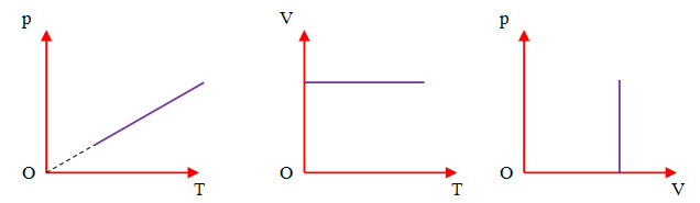 + Đẳng tích V1 = V2 . Định luật Sác – lơ :\(\frac{{{p}_{1}}}{{{T}_{1}}}=\frac{{{p}_{2}}}{{{T}_{2}}}\)