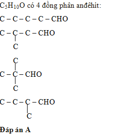 Ứng với chất có CTPT C5H10O có bao nhiêu đồng phân anđêhit