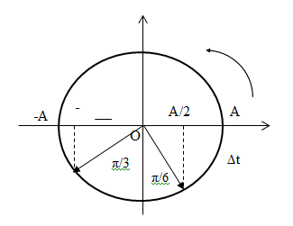 Khoảng thời gian ngắn nhất vật đi từ li độ \(x = - {{A\sqrt 3 } \over 2}\) đến li độ x = A/2tương ứng với góc quét: