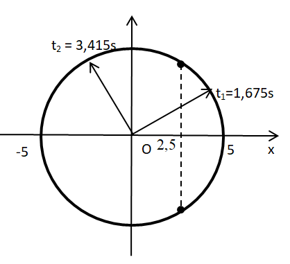 Vậy trong khoảng thời gian từ \({t_1} = 1,675\,\,s\) đến \({t_2} = 3,415\,\,s\), vật qua vị trí x = 2,5 cm 11 lần.