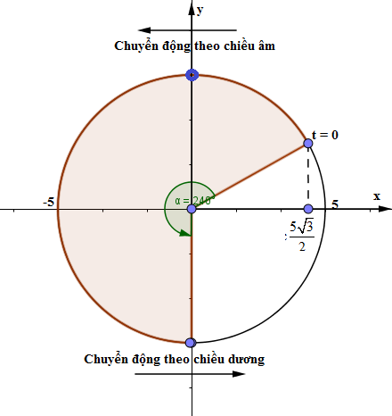 Chu kì dao động: \(T = \frac{{2\pi }}{\omega } = \frac{{2\pi }}{{4\pi }} = 0,5\,\,\left( s \right) \Rightarrow t = \frac{{5T}}{3} = \frac{{5.0,5}}{3} = \frac{5}{6}\,\,\left( s \right)\)
