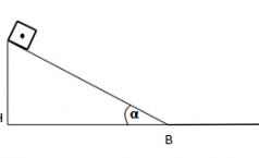 Vật được thả trượt trên mặt phẳng nghiêng dài AB = 2,5m, góc nghiêng α = 300 như hình vẽ, có hệ số ma sát µ = 0,2. Cho g = 10m/s2. Tính vận tốc vật đạt được ở chân mặt phẳng nghiêng và thời gian vật đi hết mặt phẳng nghiêng
