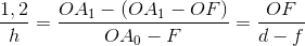 Theo đề bài : OF = 20cm; AA0 = 15cm; A0B0 = AB = h.