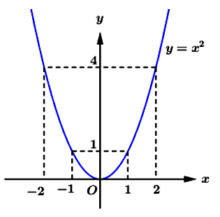 \( \Rightarrow \) Parabol \(y = {x^2}\) là đường cong đi qua các điểm \(\left( { - 2;4} \right),\,\,\left( { - 1;1} \right),\,\,\left( {0;0} \right),\,\,\left( {1;1} \right),\,\,\left( {2;4} \right)\).