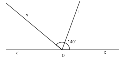 Vì hai góc \(\widehat{xOy}\) và \(\widehat{yOx'}\) là hai góc kề bù \(\Rightarrow \widehat{x'Oy}+\widehat{xOy}={{180}^{0}}\Rightarrow \widehat{x'Oy}={{180}^{0}}-\widehat{xOy}={{180}^{0}}-{{140}^{0}}={{40}^{0}}\)