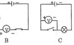 Vôn kế trong sơ đồ nào dưới đây có số chỉ bằng 0?