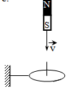 Xác định chiều dòng điện cảm ứng trong vòng dây khi nhìn vào mặt trên trong trường hợp cho nam châm rơi thẳng đứng xuyên qua tâm vòng dây giữ cố định như hình vẽ: