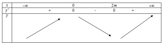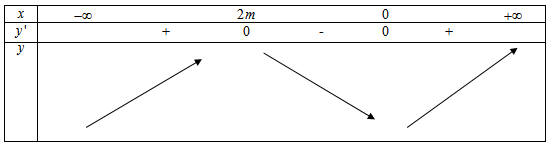 \( \Rightarrow y' = 0 \Leftrightarrow x = 0\) hoặc \(x = 2m\)