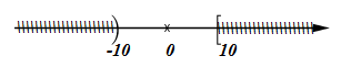 Vậy \({C_R}\left( { - \infty ; - 10} \right) \cup \left[ {10; + \infty } \right) \cup \left\{ 0 \right\} = \left[ { - 10;0} \right) \cup \left( {0;10} \right)\)
