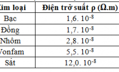 Xem bảng điện trở suất ở 20oC của một số kim loại.