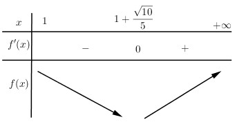 Xét hàm số \(f\left( x \right) = {{5{x^2} - 3x} \over {x - 1}} = 5x + 2 + {2 \over {x - 1}}\,\,\,\left( {x > 1} \right)\) ta có