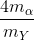 \(\overrightarrow {{p_\alpha }} + \overrightarrow {{p_Y}} = 0 \Rightarrow {p_\alpha } = {p_Y} \Leftrightarrow {m_\alpha }{K_\alpha } = {m_Y}{K_Y} \Rightarrow {{{K_Y}} \over {{K_\alpha }}} = {{{m_\alpha }} \over {{m_Y}}}\)