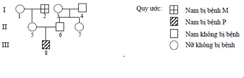 [Sơ đồ phả hệ dưới đây mô tả sự di truyền hai bệnh ở người là - Tự Học 365] Sơ đồ phả hệ dưới đây mô tả sự di truyền hai bệnh ở người là bệnh P và bệnh M. Alen A quy định không bị bệnh P trội hoàn toàn so với alen a quy định bệnh P; alen B quy định không bị bệnh M trội hoàn toàn so với alen b quy định bệnh M. Các gen này nằm ở vùng không tương đồng của nhiễm sắc thể giới tính X.