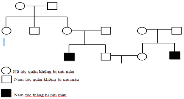 [Ở người, gen quy định dạng tóc nằm trên NST thường có 2 alen - Tự Học 365] Ở người, gen quy định dạng tóc nằm trên NST thường có 2 alen, alen A qquy định tóc quăn trội hoàn toàn so với alen a quy định tóc thẳng. Bệnh mù màu đỏ - xanh lục do 2 alen b nằm trên vùng không tương đồng của nhiễm sắc thể giới tính X quy định, alen trội B quy định mắt nhìn màu bình thường. Cho sơ đồ phả hệ sau: