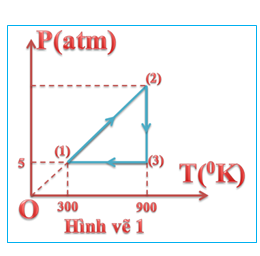 [ Cho một khối khí lý tưởng có p1 = 5atm, V1 = 2lít, T1 = 3000K biến đổ - Tự Học 365] Cho một khối khí lý tưởng có p1 = 5atm, V1 = 2lít, T1 = 3000K biến đổi trạng thái theo đồ thị được biểu diễn bên dưới (hình vẽ 1)