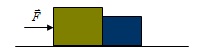 Hai vật m1 = 5kg; m2 = 3kg tiếp xúc nhau trên mặt phẳng ngang. Hệ số ma sát μ = 0,28. Tác dụng lực đẩy F = 35N theo phương ngang vào m1 (hình vẽ). Lấy g = 10m/s2.