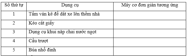 b) Các dụng cụ sau đây khi sử dụng là ứng dụng của máy cơ đơn giản nào?
