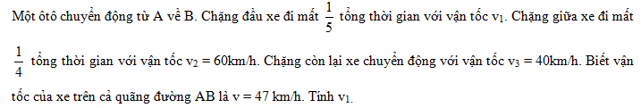 [Một người đi xe đạp đi nửa quãng đường đầu với vận tốc v1 = 12km/h, nử - Tự Học 365] Một người đi xe đạp đi nửa quãng đường đầu với vận tốc v1 = 12km/h, nửa còn lại với vận tốc v2 nào đó. Biết vận tốc trung bình trên cả quãng đường là 8km/h. Hãy tính vận tốc v2