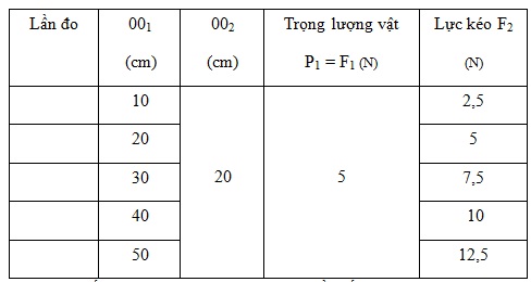 [ Tiến hành thí nghiệm với đòn bẩy, một bạn học sinh thu được kết quả n - Tự Học 365] Tiến hành thí nghiệm với đòn bẩy, một bạn học sinh thu được kết quả như sau (với đòn bẩy có dạng như trong hình vẽ bên)