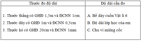 - Em dùng thước nào, có GHĐ và ĐCNN là bao nhiêu?