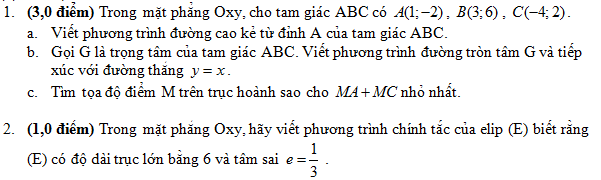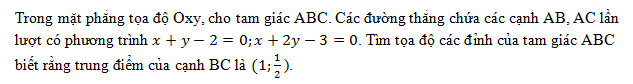 [Cho tam giác ABC có phương trình ( AB ):x + y + 5 = 0. Phương trình ( - Tự Học 365] Cho tam giác ABC có phương trình \(\left( {AB} \right):\,\,x + y + 5 = 0\). Phương trình \(\left( {AC} \right):\,\,3x + 2y - 1 = 0\). Trọng tâm \(G\left( {1;3} \right).\) Lập phương trình BC.