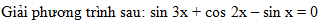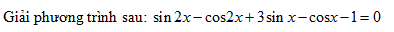 [Giải phương trình sau: ( căn 3 sin 2x + cos 2x =2 - Tự Học 365] Giải phương trình sau: \(\sqrt 3 \sin 2x + c{\rm{os 2}}x =2 \cos x - 1\)