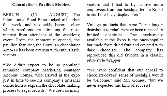 Questions 45-49 refer to the following article, schedule, and flyer.