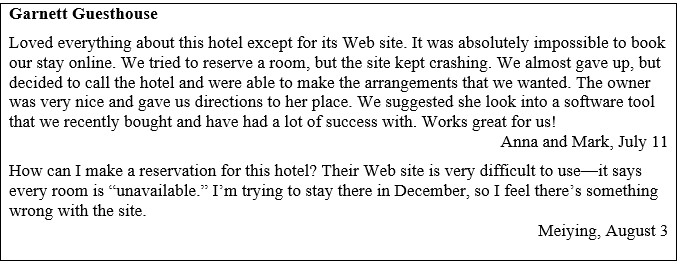 Questions 50-54 refer to the following hotel reviews, Web page, and article.