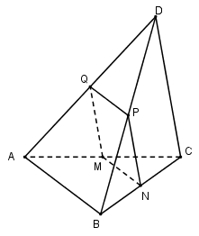 Trong $\left( {ACD} \right)$ và $\left( {BCD} \right)$ kẻ $MQ//CD$ và \(NP//CD\left( {Q \in AD,P \in BD} \right)\).