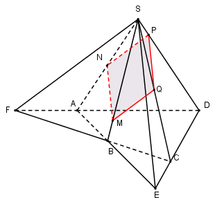 Vậy thiết diện của hình chóp khi cắt bởi \(mp\left( \alpha \right)\) là tứ giác $MNPQ$.