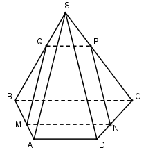 Cho hình chóp $S.ABCD$ có đáy $ABCD$ là hình thang có đáy lớn $BC$ , đáy nhỏ $AD$. Mặt bên $\left( {SAD} \right)$ là tam giác đều, \(\left( \alpha \right)\) là mặt phẳng đi qua $M$ trên cạnh $AB$ , song song với $SA,BC$ . Mp\(\left( \alpha \right)\)cắt các cạnh $CD,SC,SB$ lần lượt tại $N,P,Q.MNPQ$ là hình gì?