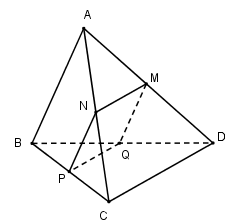 Khi đó: \(\left( \alpha \right) \cap \left( {ABD} \right) = MQ//AB,\left( \alpha \right) \cap \left( {ABC} \right) = NP//AB.\)