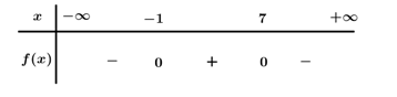 Ta có $-{x^2} + 6x + 7\; = 0 \Leftrightarrow \left[ \begin{array}{l}x = 7\\x = - 1\end{array} \right.$.