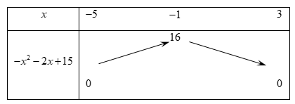 Đặt \(t = \sqrt { - {x^2} - 2x + 15} \), ta có bảng biến thiên