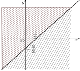Thử trực tiếp ta thấy \(\left( {0\,\,;\,\,0} \right)\) là nghiệm của phương trình (2) nhưng không phải là nghiệm của phương trình (1). Sau khi gạch bỏ các miền không thích hợp, tập hợp nghiệm của bất phương trình chính là các điểm thuộc đường thẳng \(\left( d \right):4x - 3y = 2.\)